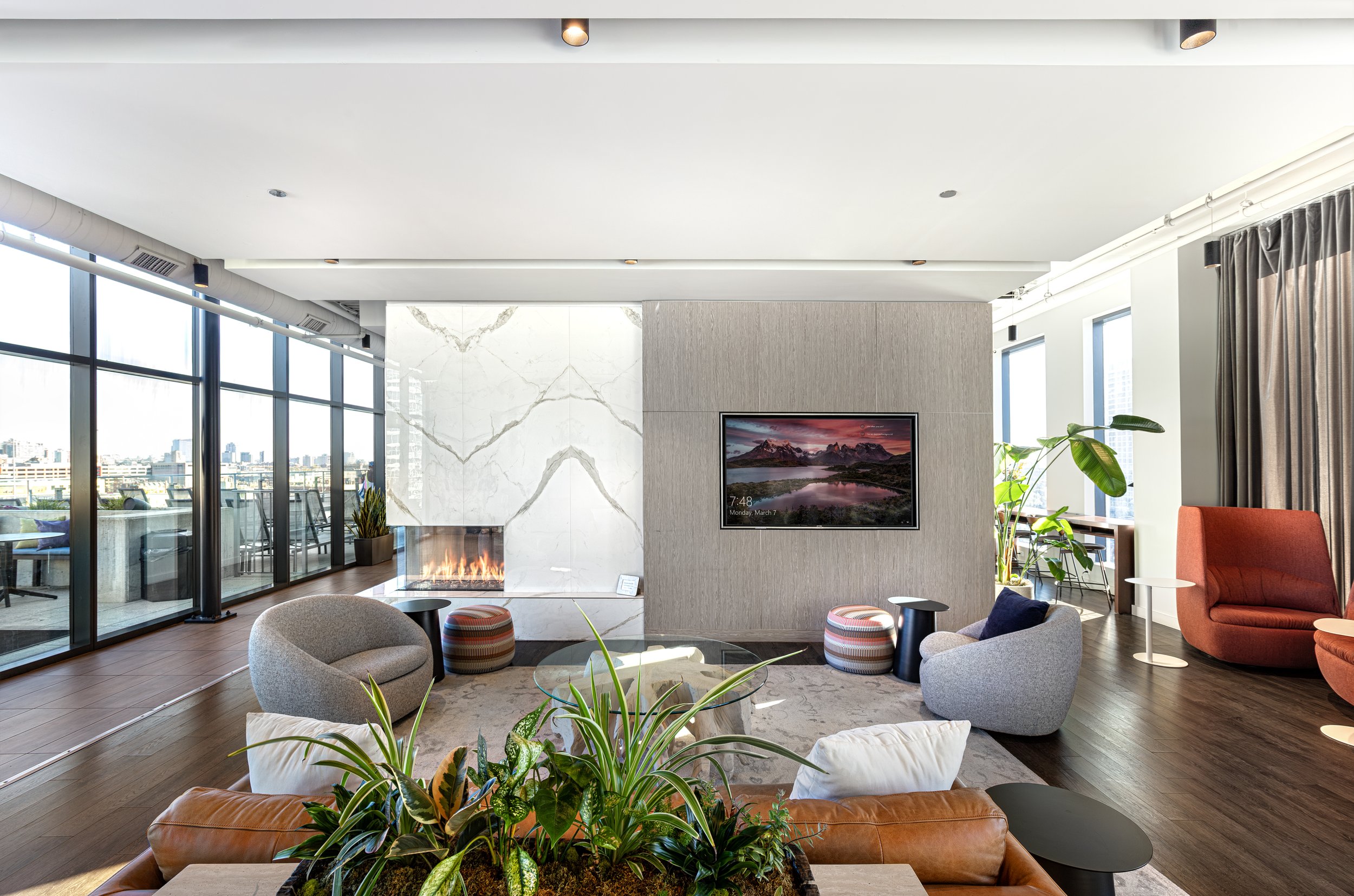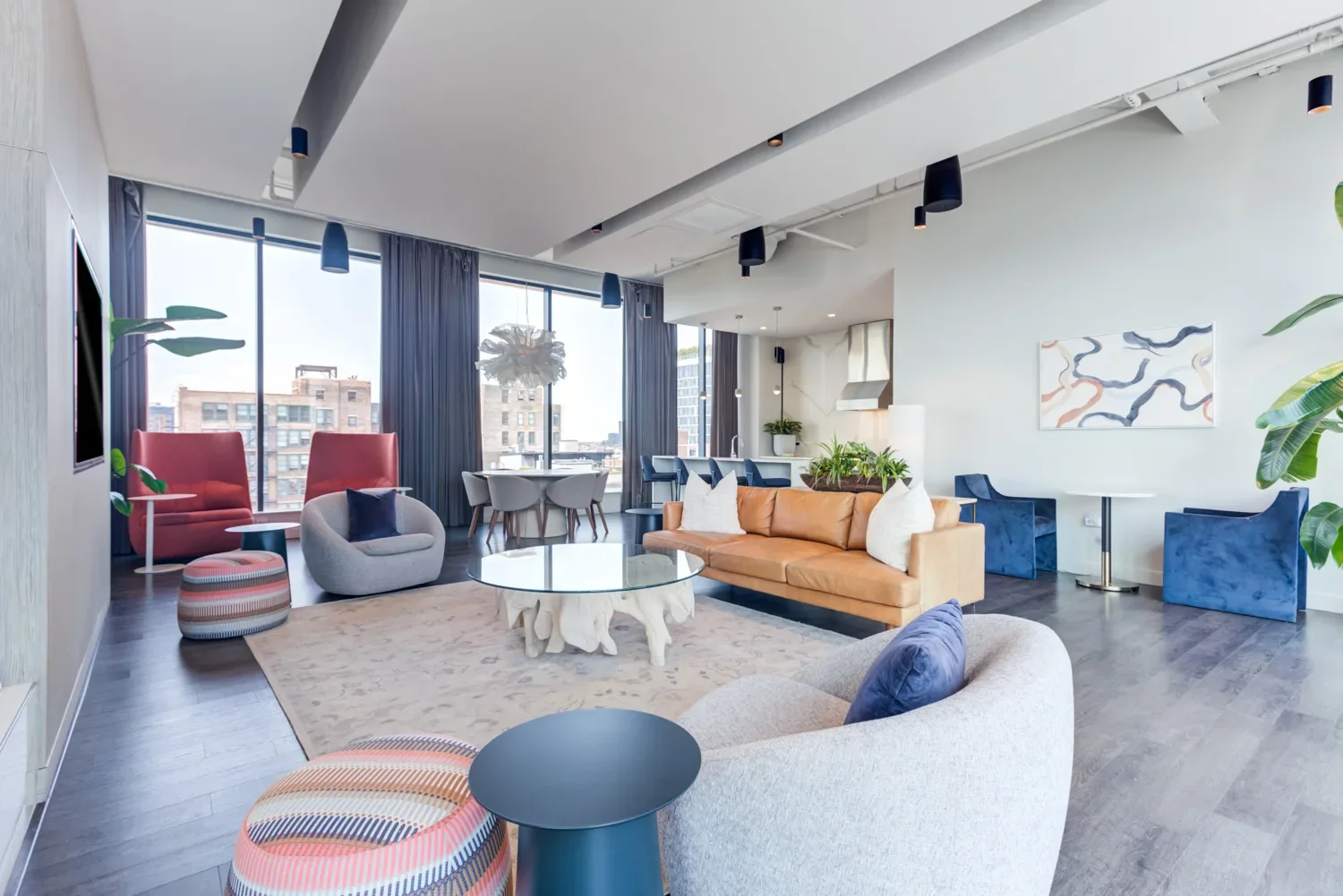 The Van Buren is an interior design project located in Chicago’s vibrant Greektown. We executed a comprehensive FF&E update in the public spaces—focusing on the lobby and amenity floor—to transform the environment. Drawing inspiration loosely from Greek art, we curated artworks that evoke heritage and elegance. Our approach opened up the space and enhanced functionality, creating a refined and contemporary atmosphere that better serves its occupants.