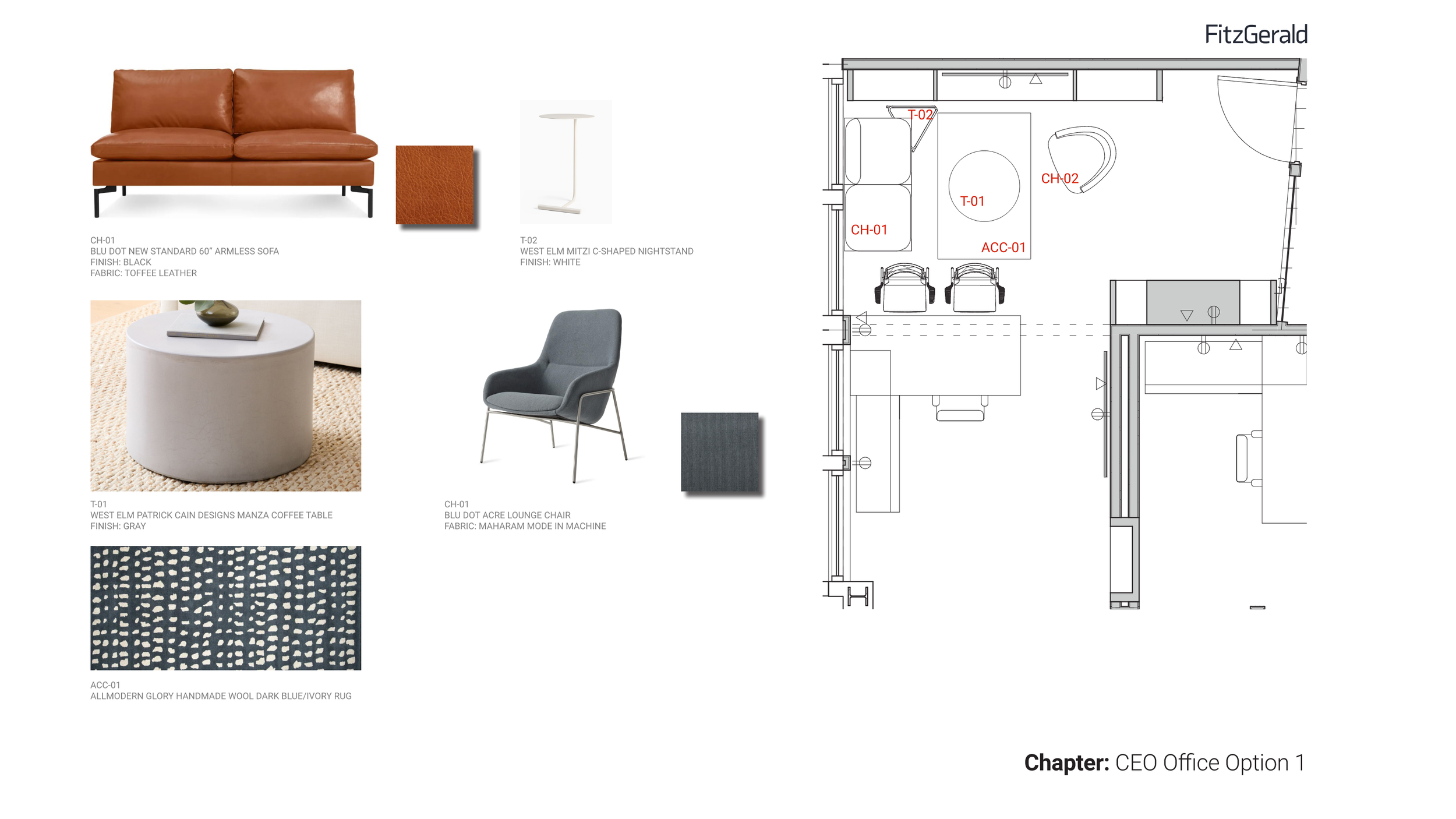 For this executive office, I curated furniture and accessories to achieve the client’s desired mid-century modern aesthetic. The selections balanced timeless design with functionality, creating a sophisticated and cohesive workspace.