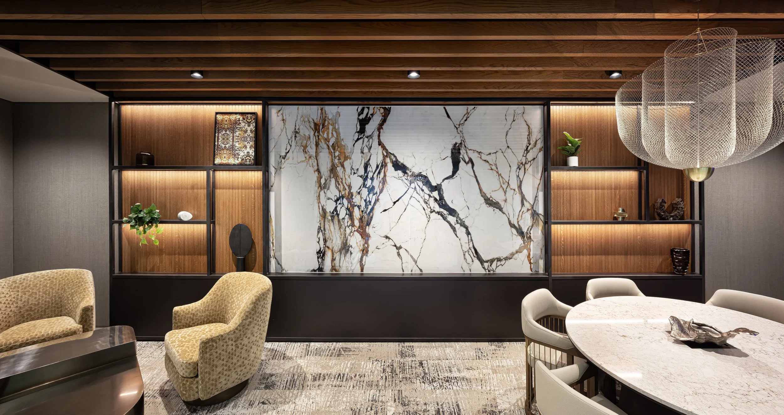 This multi-floor workplace renovation focused on enhancing functionality and aesthetics through updated finishes and strategic design upgrades. Floors 25, 27, 28, and 29 received partial finish updates, while the 30th floor underwent a full gut renovation to create a new amenity space featuring a pre-function area, elevated conference rooms, and a café. Additionally, the 27th floor was transformed into a client-focused, event-driven pre-function space, further elevating the workplace experience.